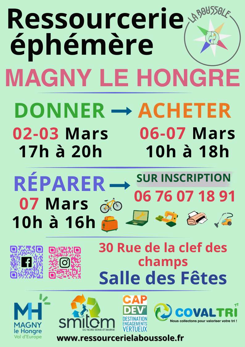Pour la 2eme année la Ressourcerie La Boussole sera présente à Magny le Hongre, du 2 au 7 mars 2026 !